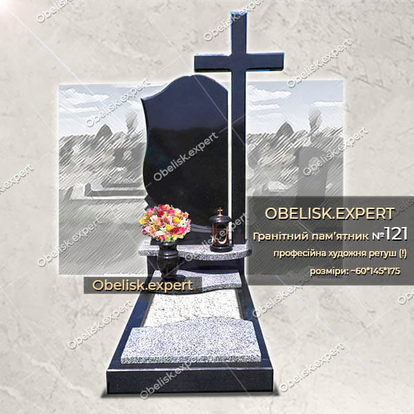 Гарний комбінованний пам’ятник із чорного та сірого граніту.